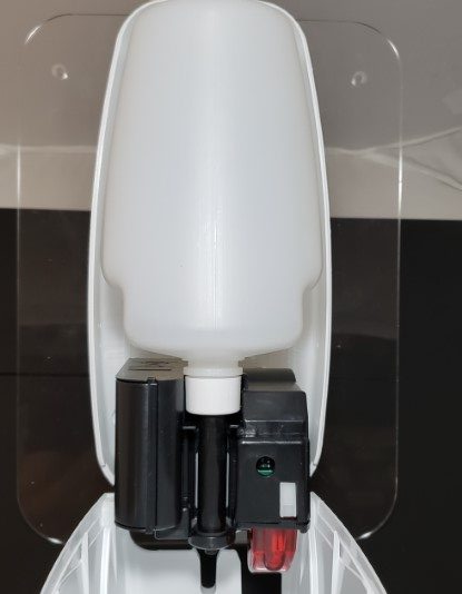Wanddispenser met sensor voor contactloos desinfecteren van handen. De dispenser kan eenvoudig worden gevuld met ca. 1 liter desinfectiemiddel en zorgvuldig worden afgesloten. Door de handen onder de sensor te houden wordt een kleine hoeveelheid desinfectiemiddel afgegeven. Deze desinfectie dispenser wordt geleverd inclusief transparante achterwand plaat voor wandmontage. De dispenser wordt ook geleverd met 1 liter desinfectiegel.